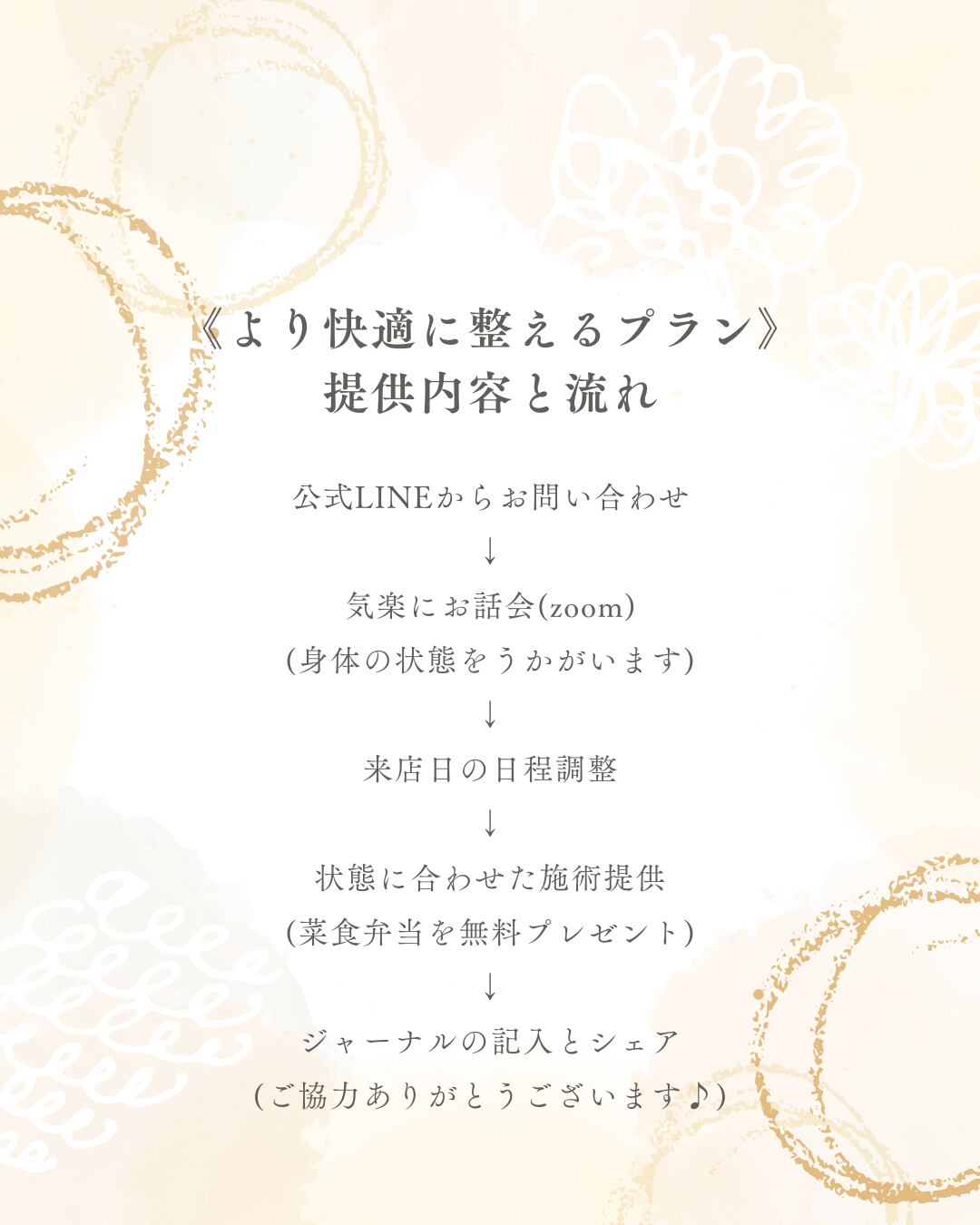 施術と食を通して、感じたことをシェアしていただき、日常の気づきとして活かし、繋げていただけたら嬉しいです。