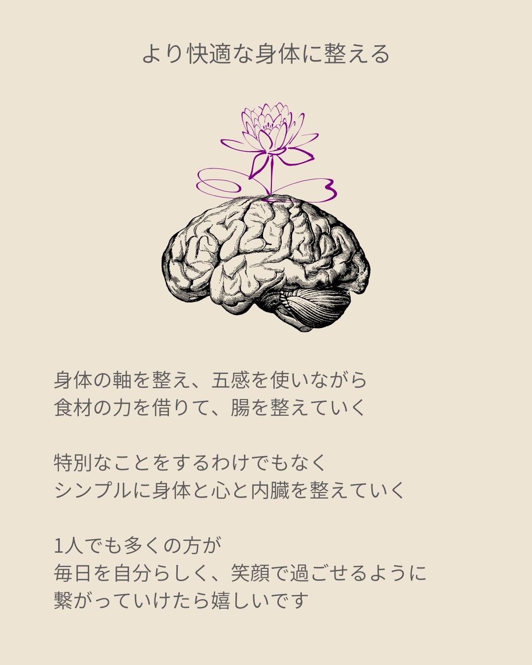 施術と食を通して、感じたことをシェアしていただき、日常の気づきとして活かし、繋げていただけたら嬉しいです。